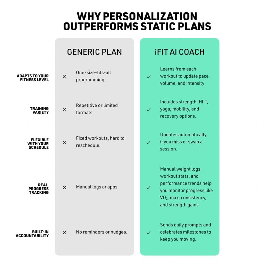 When your training plan doesn’t adapt to your pace, recovery, or goals, it’s easy to lose motivation. That’s why more and more people are switching to a personalized training program, one that adjusts in real time, keeps you accountable, and meets your body where it is today.